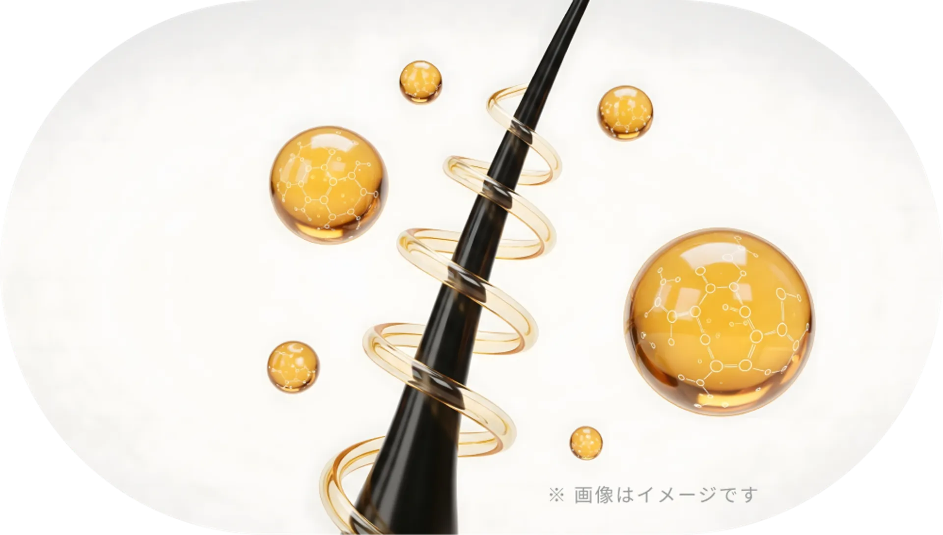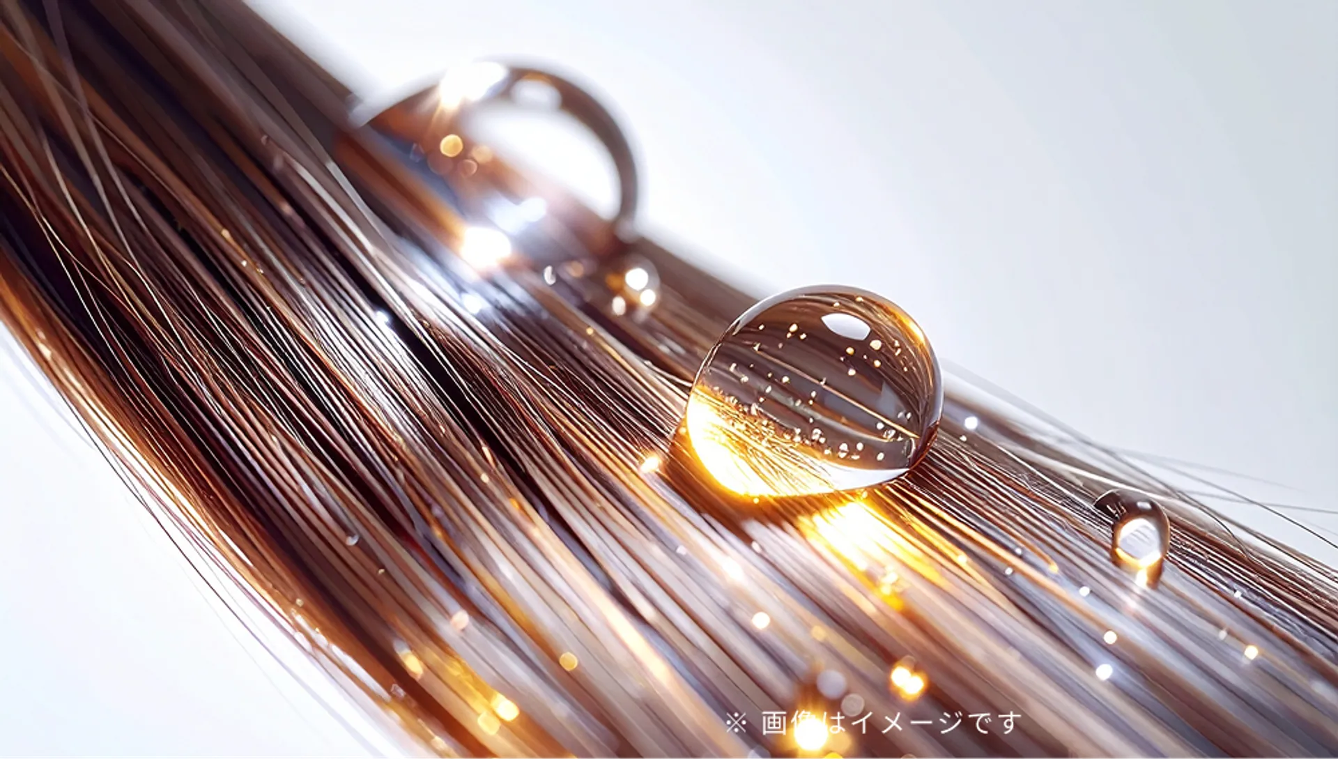 なめらか成分がキューティクルに密着し、表面の凹凸や乱れをピタッと整えます。軽やかな指通りと、しっとりとしたまとまりを両立した質感に。